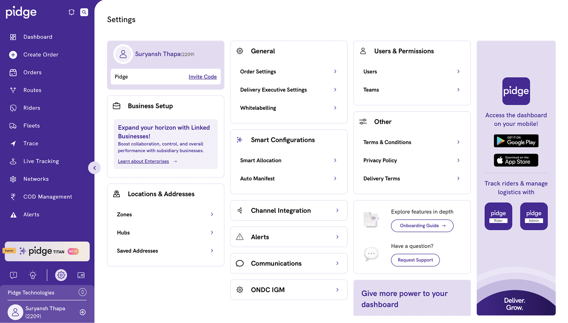 To generate an API token, navigate to Settings page and click on Channel Integration.