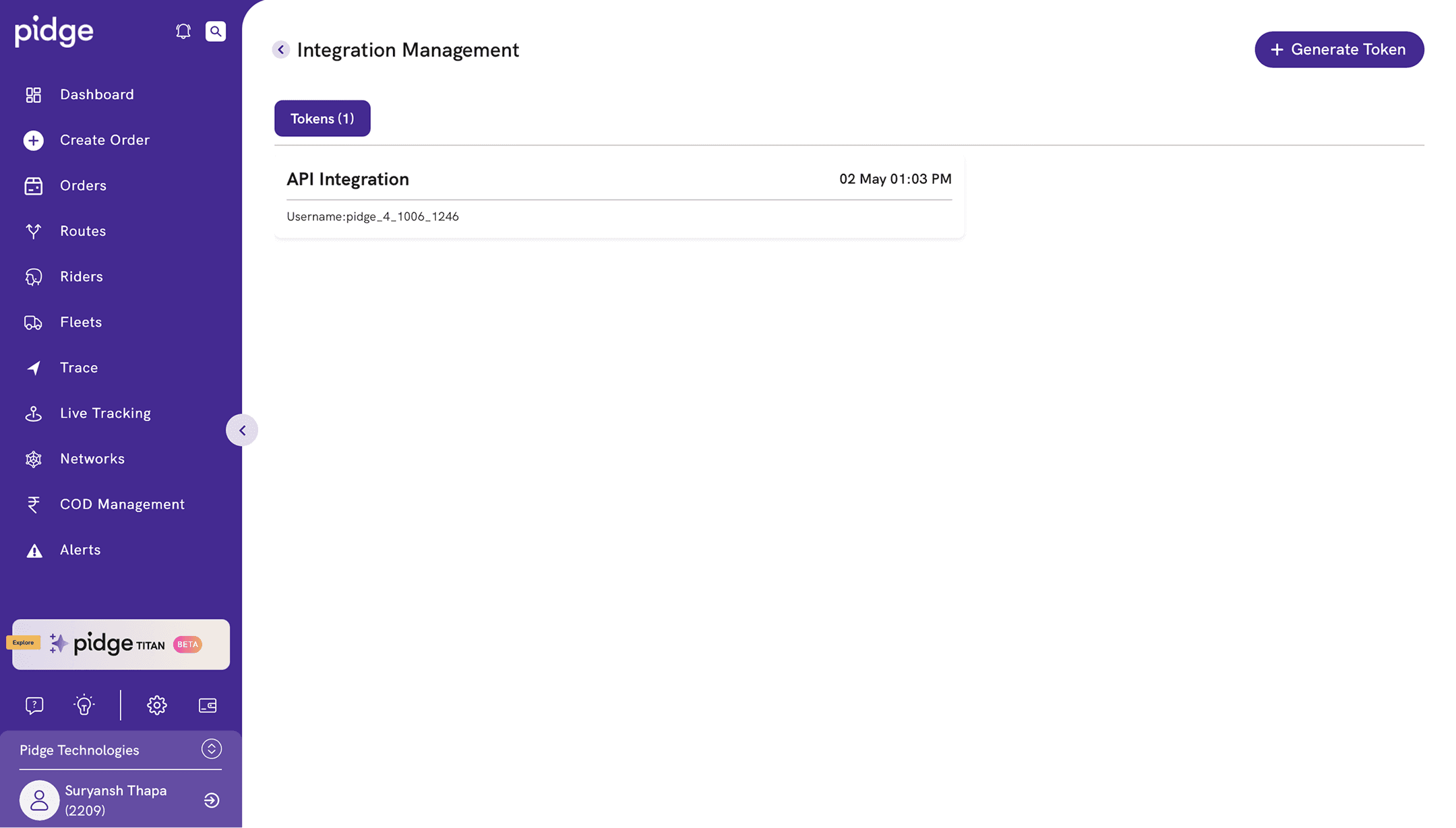 Once confirmed, your custom API Token would be generated, that you would use for integrations.